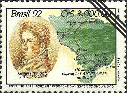 Com o apoio do czar russo Alexander I e de autoridades brasileiras, o naturalista alemão Georg Heinrich von Langsdorff (naturalizado russo), médico, botânico, zoólogo e antropólogo (1774-1852), então cônsul da Rússia no Rio de Janeiro, iniciou, em 1821, uma grande expedição de reconhecimento do interior do Brasil.Imagem: O Barão Langsdorff