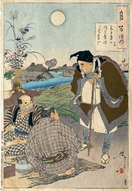 Parece que o mestre Basho se encheu desse lance de ficar buscando escolas com as quais pudesse sentir-se pleno e o caminho, também seguido por outros poetas, foi o de mudar radicalmente de vida.