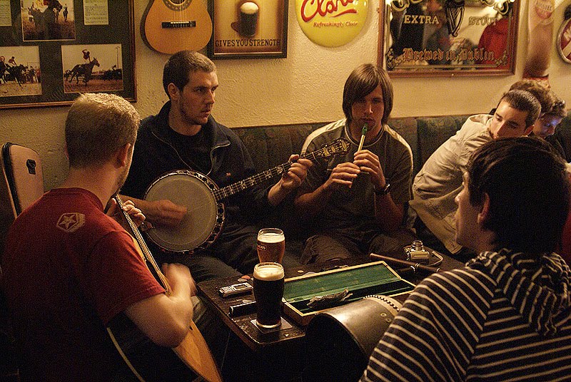 Sabe o que é uma session irlandesa? Eu conto. É um tipo de evento em que um grupo de pessoas se reúne, em um pub, para beber, conversar e tocar música tradicional. Coisa entre amigos, não tem nada a ver com apresentação em público, já que isso foge totalmente do espírito de uma session. Eu nunca fui (ainda) mas sei como funciona: primeiro chega um, com uma flauta, pede uma Guinness e logo chega um camarada, empunhando seu bodhrán, instrumento de percussão que lembra um tambor.